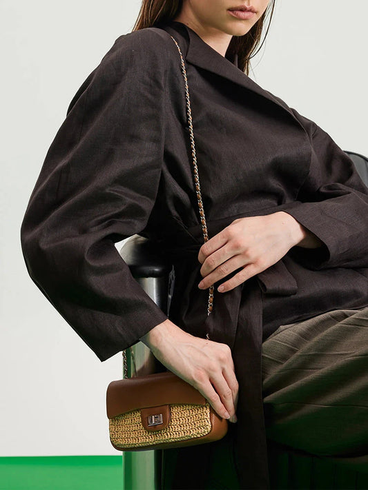 最新商品Fleur 拉菲草皮革鍊帶斜背包