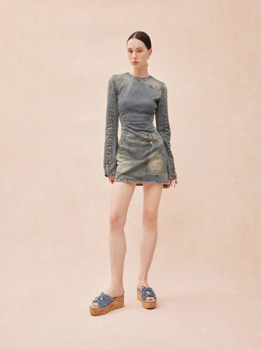 Ferlyn 牛仔雙結楔形涼鞋